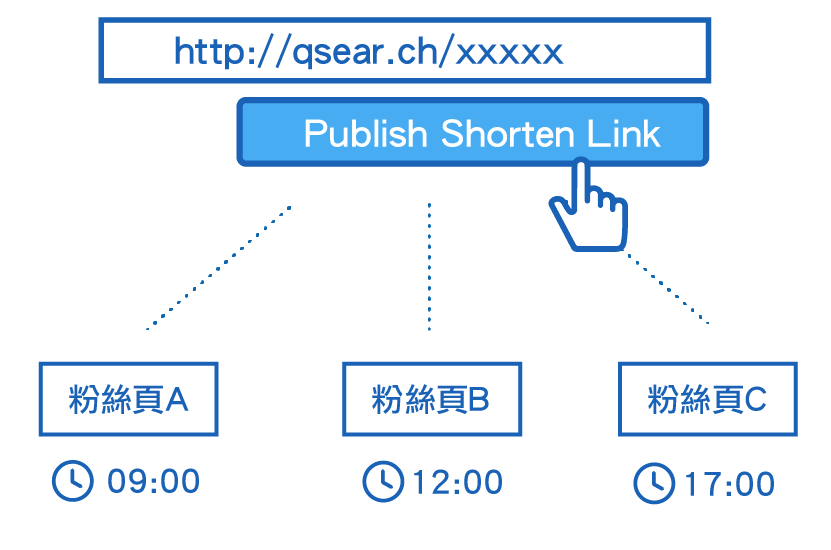 網頁內一鍵快速分享連結到管理的粉絲頁群,不用一直切換畫面、複製貼上。額外的排程功能,讓你簡單掌握發佈時機。點此安裝Chrome Extension